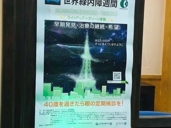 日本緑内障学会は、啓発活動の一環として、世界緑内障週間に合わせて、全国で「ライトアップin グリーン運動」を展開しています。