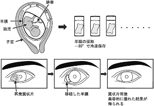 我々のグループでは、新しい羊膜移植術式の開発や、羊膜移植術後の眼圧測定法など、羊膜に関する臨床研究を積極的に進めています。