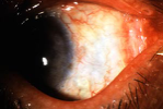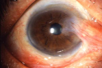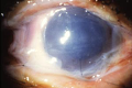 図5 B:羊膜カバーは受診当日に施行。眼表面は羊膜でカバーされており、疼痛の著明な減弱を認めた。